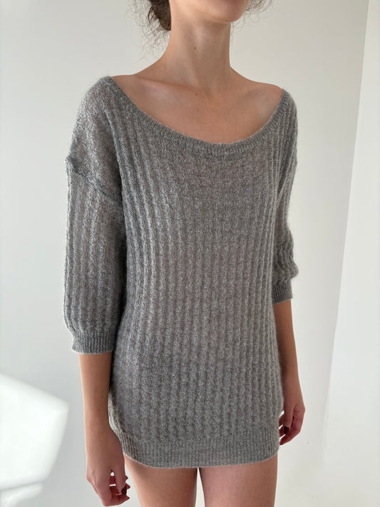 Top în croi lung lejer din baby mohair cu decolteu bărcuța