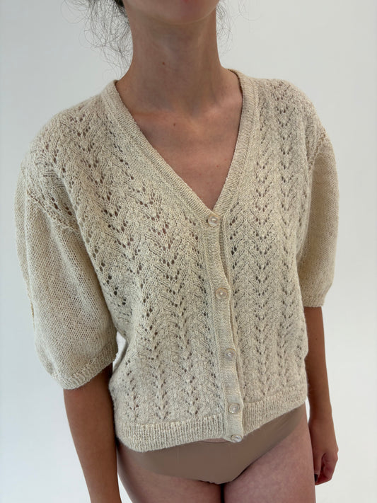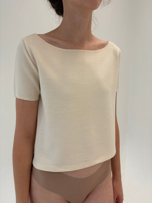 Top ivoire din lana merino extrafina de gramaj mare ușor cropped