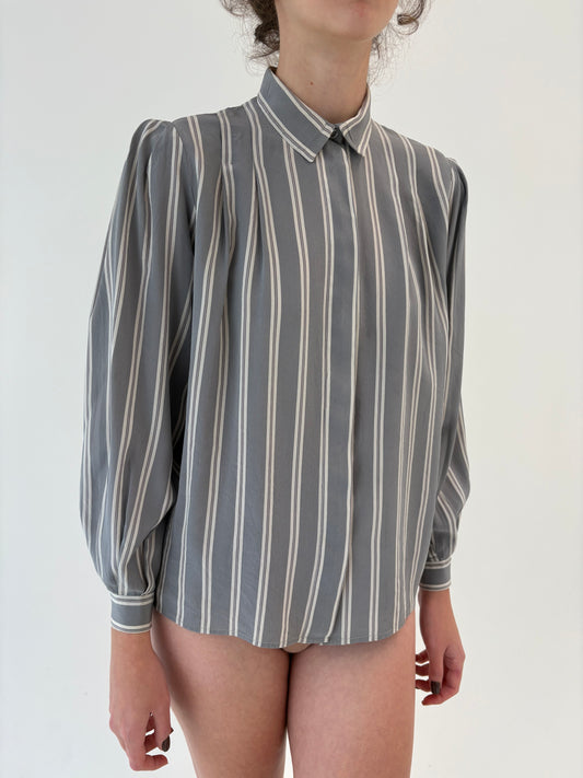 Cămașa vintage din mătase naturală în nuanțe neutre în croi amplu cu funda
