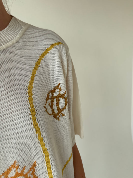 Top vintage butter white din tricot de bumbac texturat de gramaj mare