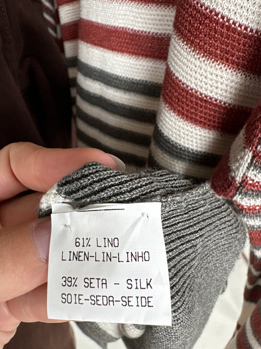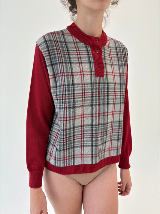 Bluză vintage din tricot și stofă de lana extrafina burgundy și gri