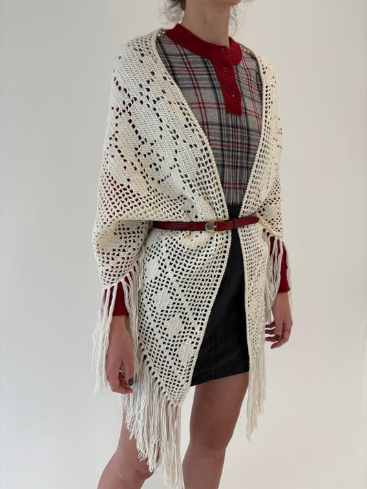 Capa vintage superba lucrata manual din macrame de lana extrafina