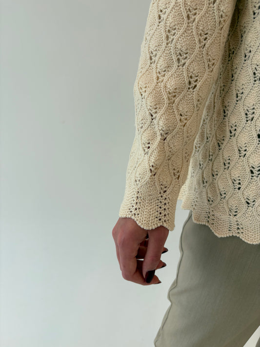 Cardigan vintage butter white dantelat din cea mai fină lana de gramaj mare