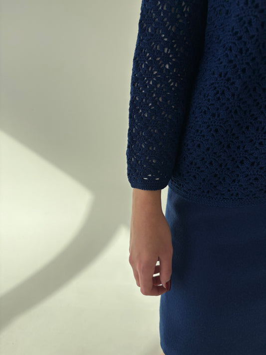 Cardigan vintage dantelă albastru cerneală lucrat manual din lana extrafina