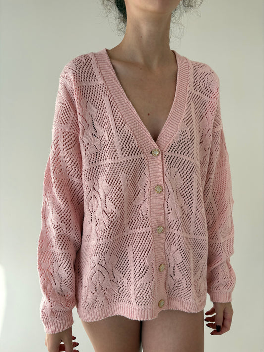 Cardigan vintage din macrame gros de bumbac powder pink