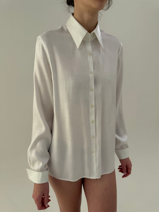 Cămașa albă în croi actual din poplin high end de bumbac structurat