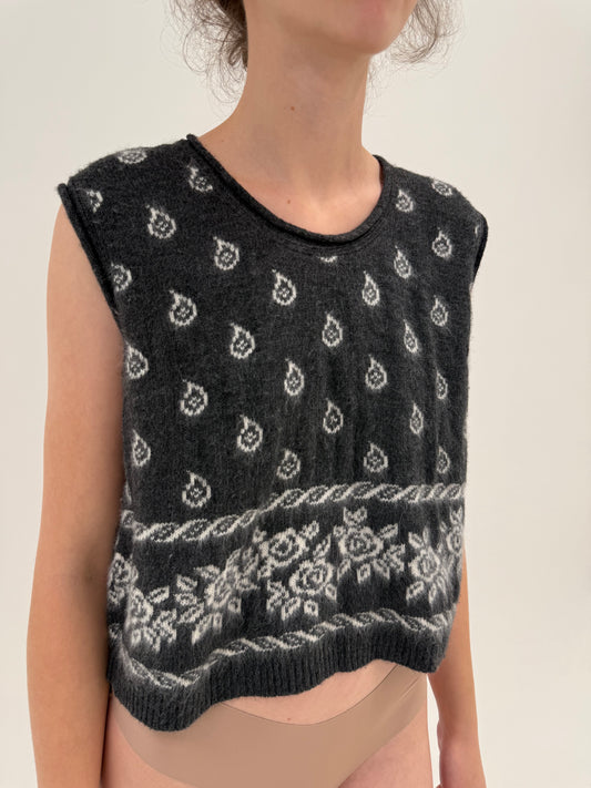 Top vintage animal print cu aplicații manuale delicate superbe din lana extrafina