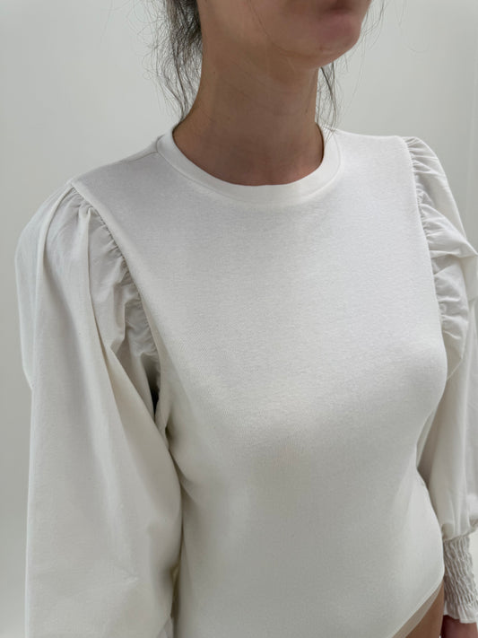 Top vintage cambrat cu mâneci ample din pânză și manșete ultra înalte