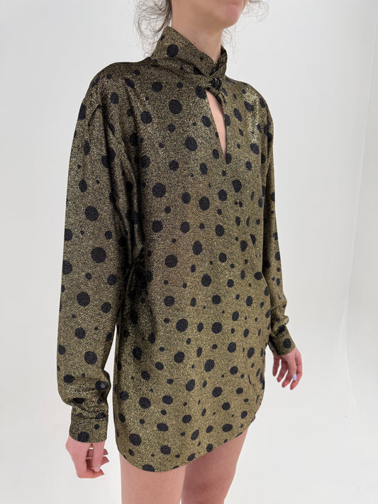 Top vintage din lurex cu buline și decupaj chic de la zi la seară