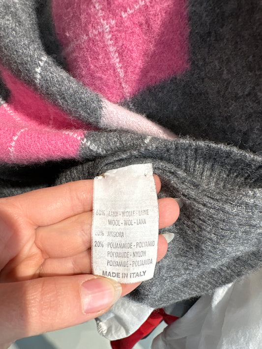 Vestă / top super pufos din lana cu Angora în romburi și nuanțe de roz