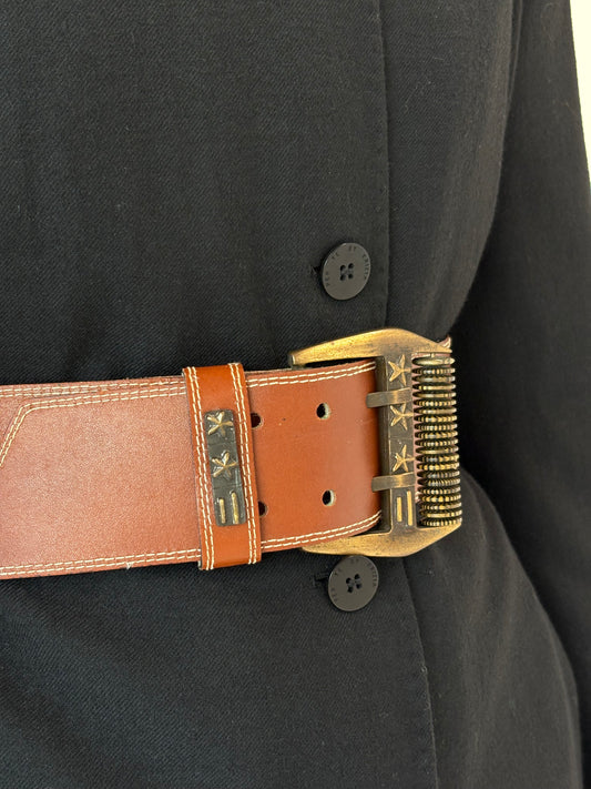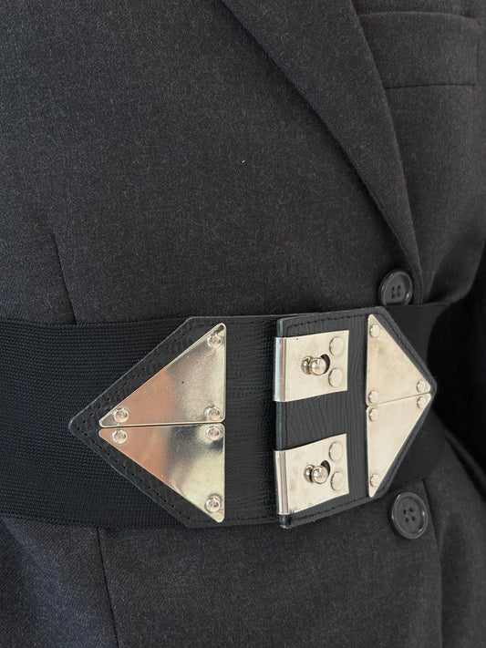 Centura vintage din piele naturală neagră extrafina cu feronerie argintie