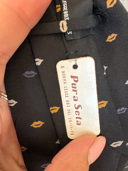 Cravata neagră italiana nouă cu eticheta din mătase naturală