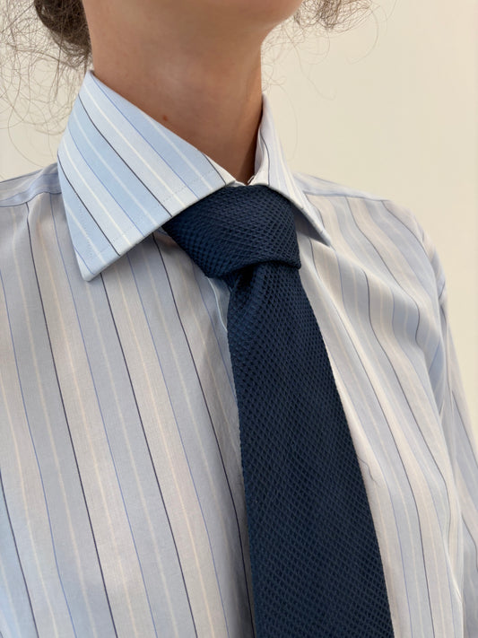 Cravata Navy în combinație clasică de culori din mătase naturală