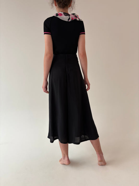 Culottes negri cu talie ultra înaltă din mătase naturală