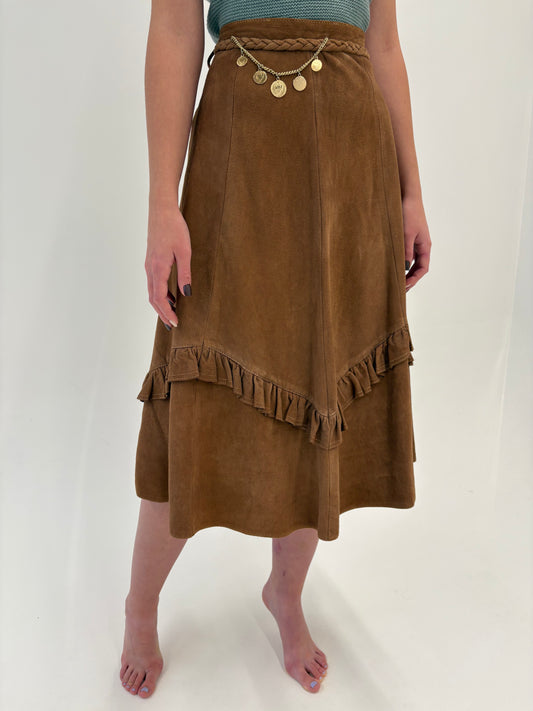 Fustă A-line din piele naturală moale cu cordon detașabil și aplicații metalice
