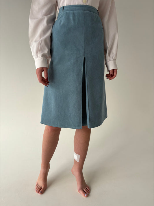 Fustă albastru ciel cu aspect din piele întoarsă cu talie ultra înaltă