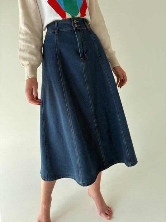 Fustă A-line vintage din jeans premium darker wash cu talie ultra înaltă