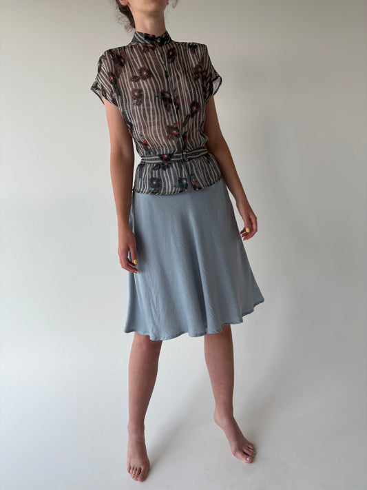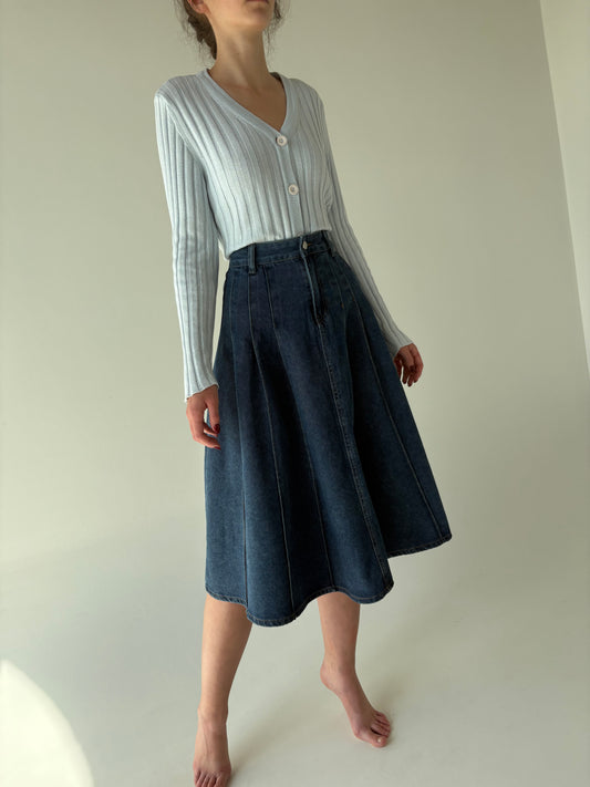 Fustă baby blue in bie cu talie ultra înaltă marcată