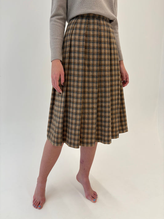 Fustă camel plisată din Tartan de lana cu talie ultra înaltă marcată