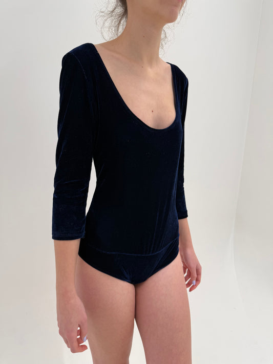 Body vintage modelator albastru cerneală din catifea cu decolteu la spate