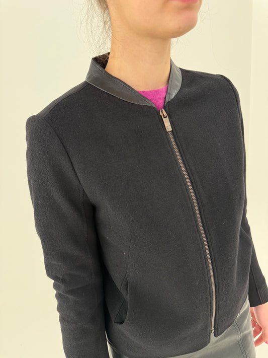 Bomber negru Hugo Boss din lana extrafina și piele naturală la guler