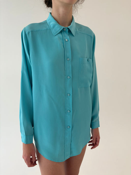 Cămașa de brand Madeleine light mint green din mătase naturală