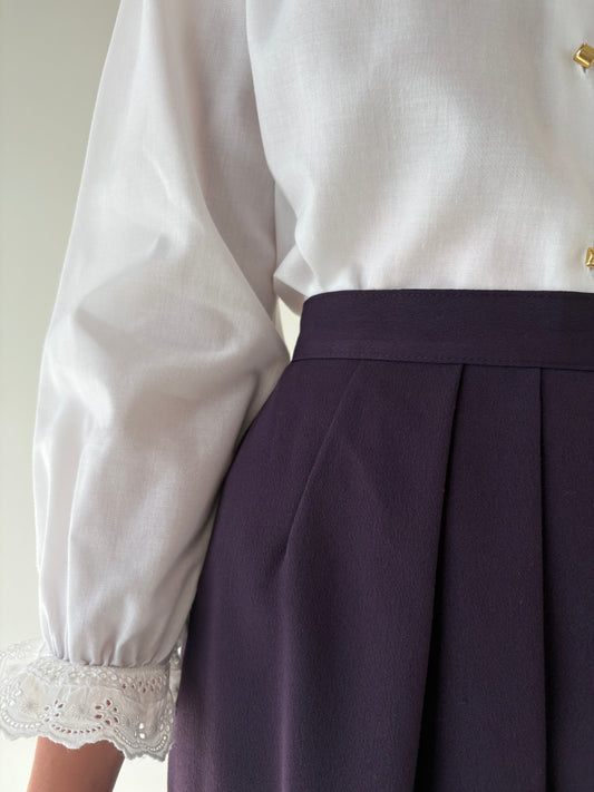 Fustă din stofita de lana în croi elaborat petrecut cu talie ultra înaltă