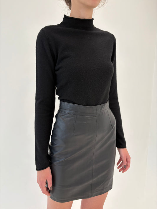 Fustă din piele naturală moale cu talie ultra înaltă marcată