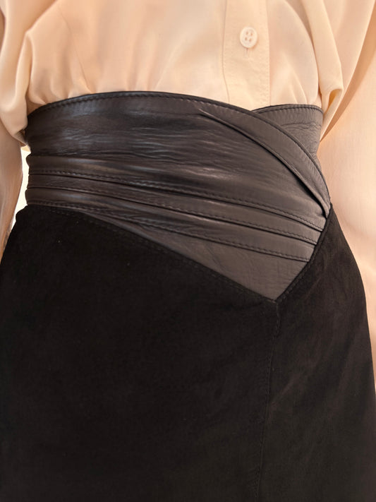 Fustă din piele naturală cu talie ultra ultra marcată superbă