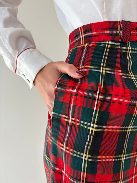 Fustă din Tartan de lana extrafina cu buzunare și talie ultra înaltă
