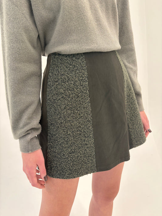 Fustă forest green din piele naturală și boucle de lana cu talie ultra înaltă