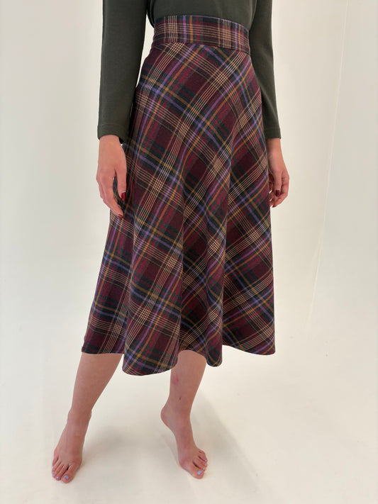 Fustă extrem de amplă din Tartan extrafin de lana cu buzunare