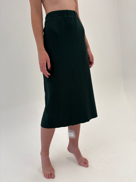 Fustă forest green cu talie ultra înaltă marcată elastică în croi conic