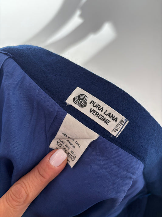 Fustă italiană conică albastru cerneală cu talie ultra înaltă din lana pura