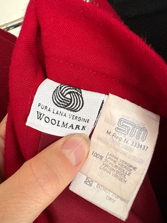 Fustă mini cherry red din lana pura virgină extrafina certificată