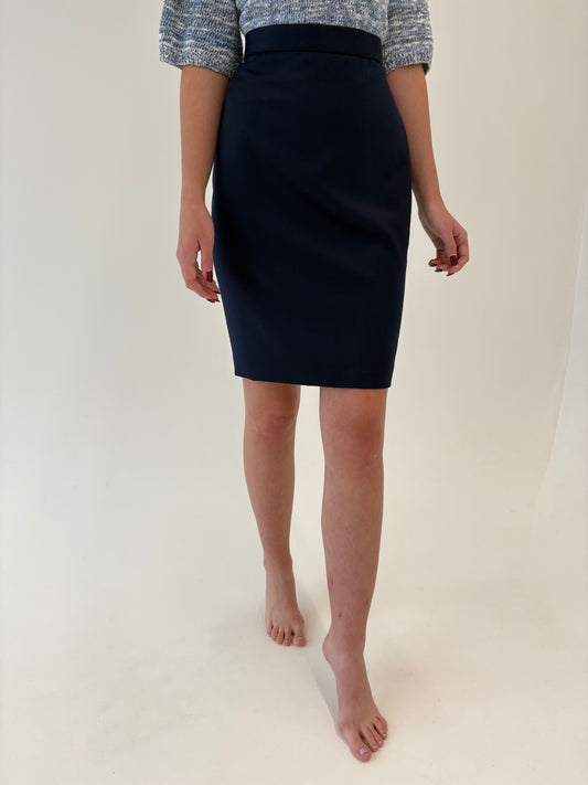 Fustă Navy conică cu talie ultra ianlta marcată din lana extrafina
