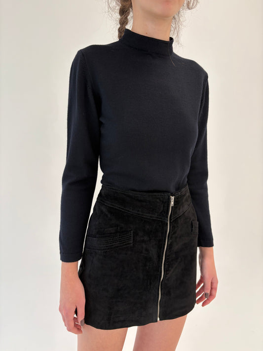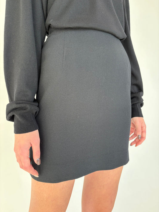 Fustă neagră mini cu talie ultra înaltă marcată din lana extrafina