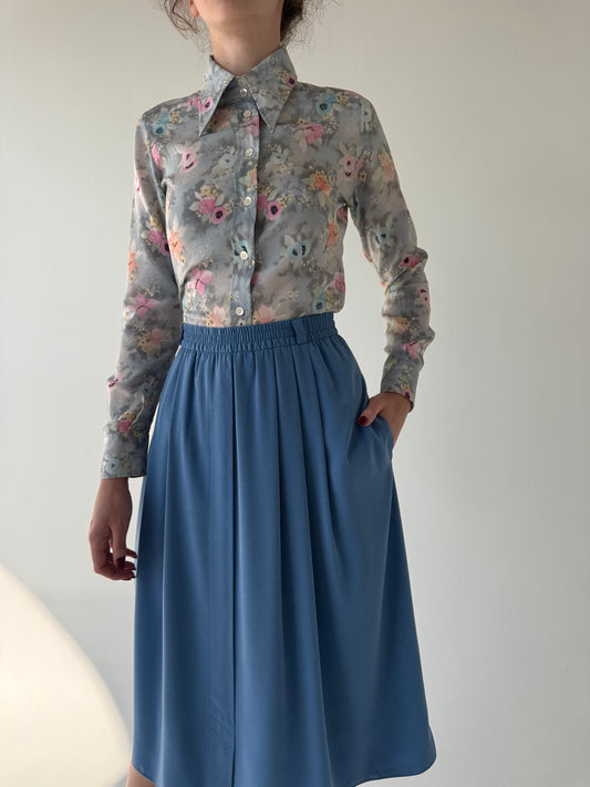 Fustă vinatge albastru ciel cu aspect ușor de piele întoarsă și buzunare