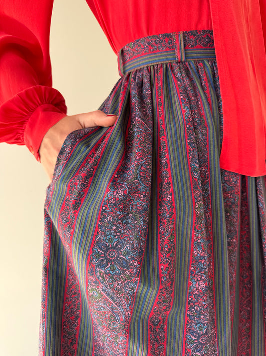 Fustă vintage cu print paisley în culori superbe de toamnă