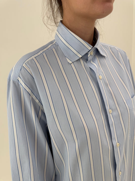 Cămașa albă cu dungi fine baby blue italiană din poplin confort