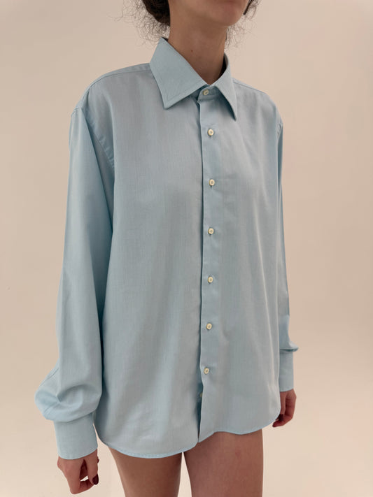 Cămașa baby blue din poplin texturat de bumbac de brand premium italian