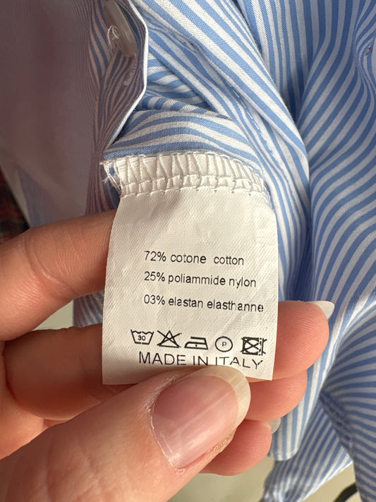 Cămașa baby blue italiană petite din poplin premium în dungi