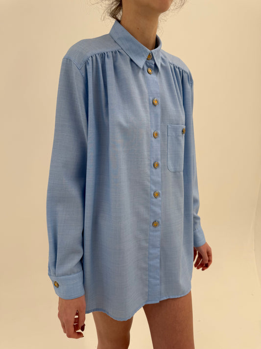 Cămașa baby blue din lana extrafina cu nasturi aurii