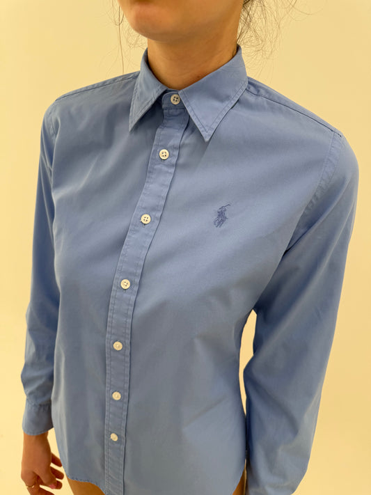 Cămașa baby blue Ralph Lauren baby blue din poplin plin de bumbac
