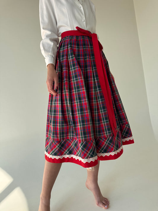 Fustă vintage extrem de amplă în carouri cu talie ultra înaltă
