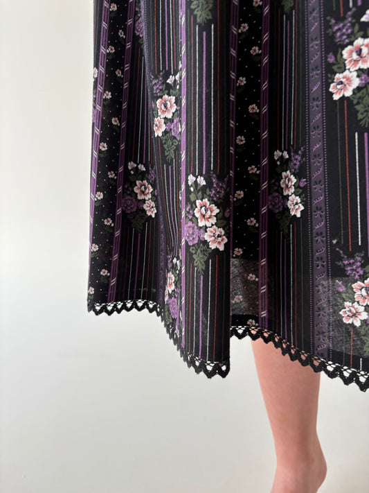 Fustă vintage în croi de ani 50 din bumbac gros texturat cu print lavandă delicat