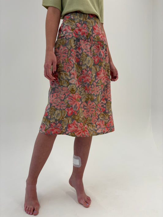Fustă vintage excepțională cu prin floral superb din lana extrafina