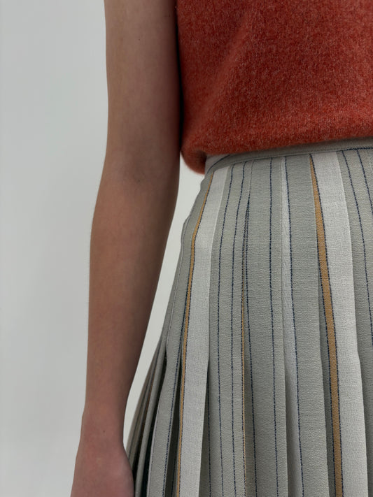 Fustă vintage midi plisată în nuanțe pudrate cu talie ultra înaltă din lana