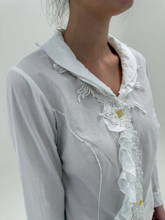 Cămașa cambrata cu jabou și aplicații din dantelă macrame