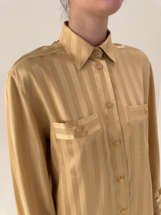 Oversized/ M/LCămașa camel satinata cu dungi